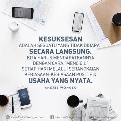 Kesuksesan adalah sesuatu yang tidak didepat secara langsung. Kita harus mendapatkannya dengan cara "mencicil" setiap hari melalui serangkaian kebiasaan-kebiasaan positif & usaha yang nyata. #AndrieWongso#Motivasi#Inspirasi