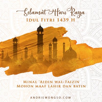 "Setelah berjuang 1 bulan penuh, kini saatnya menikmati kemenangan sejati". Saya, Andrie Wongso bersama team mengucapkan: Selamat Hari Raya Idul Fitri 1439 H kepada semua yang merayakan. Minal 'Aidin wal-Faizin. Mohon maaf lahir dan batin. Salam hangat Luar Biasa! #Ramadhan